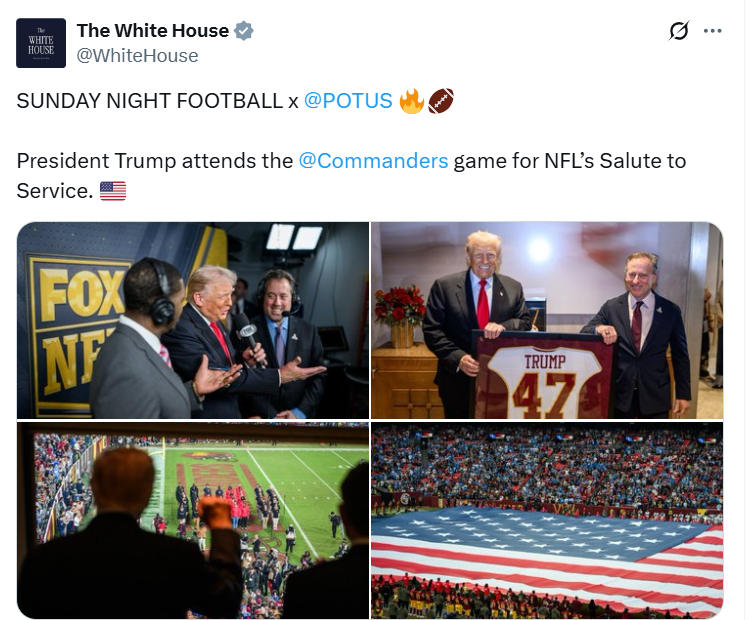 SUNDAY NIGHT FOOTBALL x @POTUS 🔥🏈 President Trump attends the @Commanders game for NFL’s Salute to Service. 🇺🇸